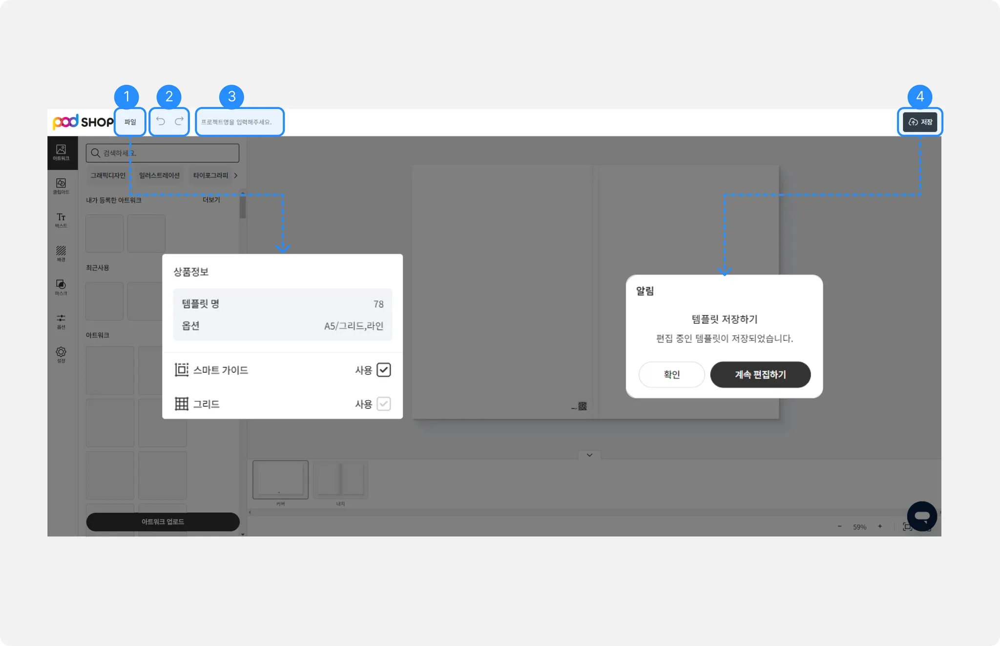 4 | 저장 | 클릭 시, 편집된 내용이 POD 상품에 저장됨 |