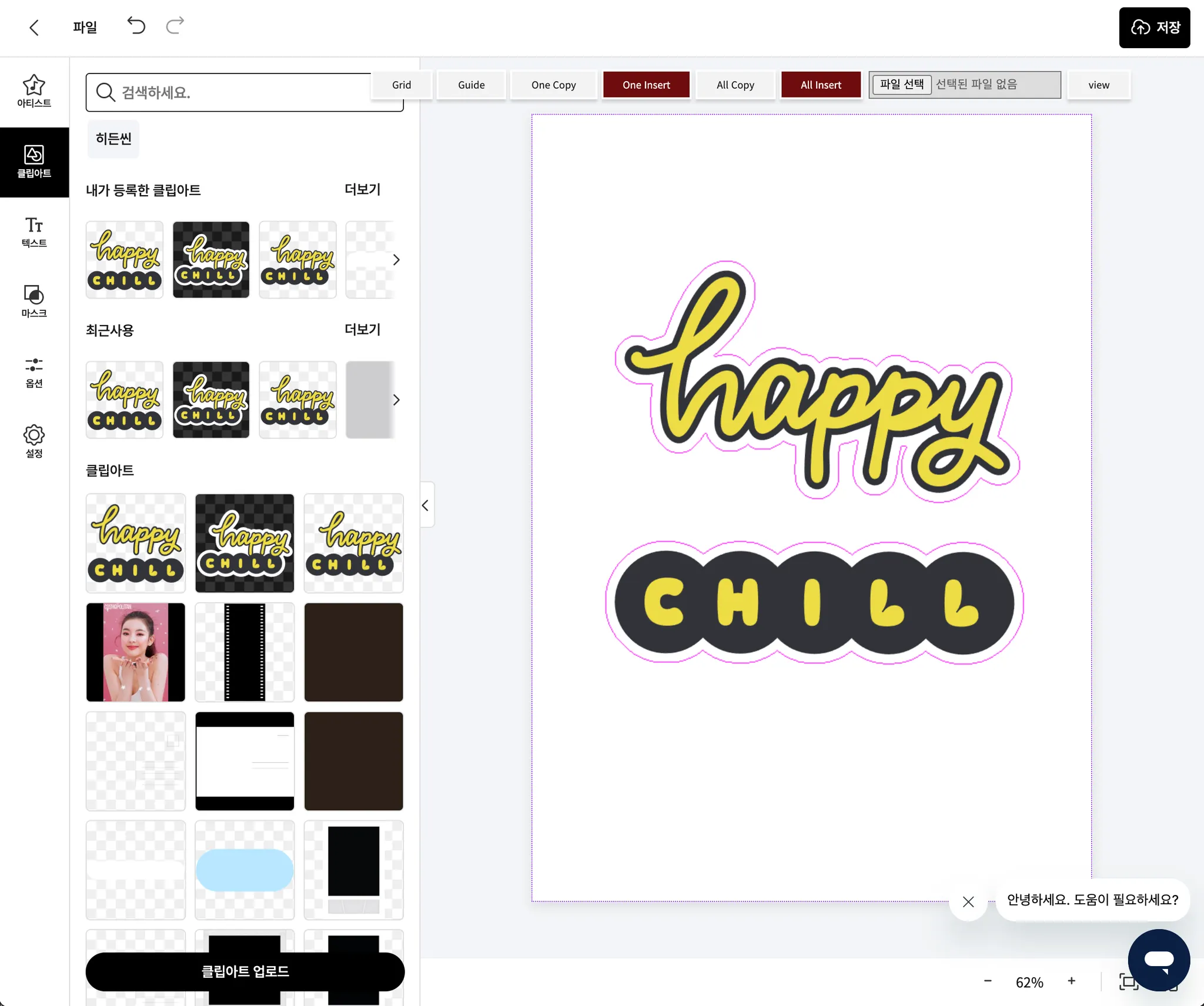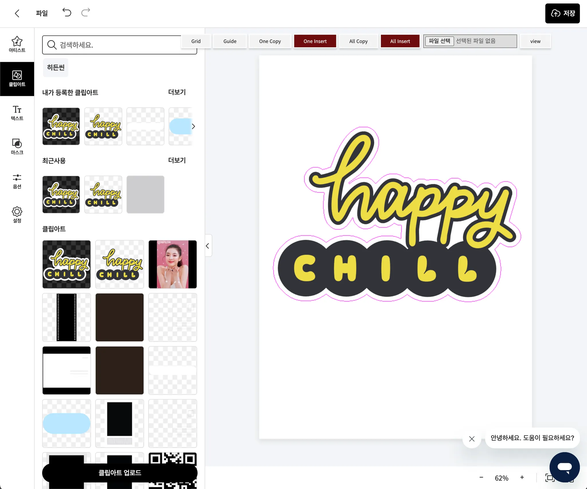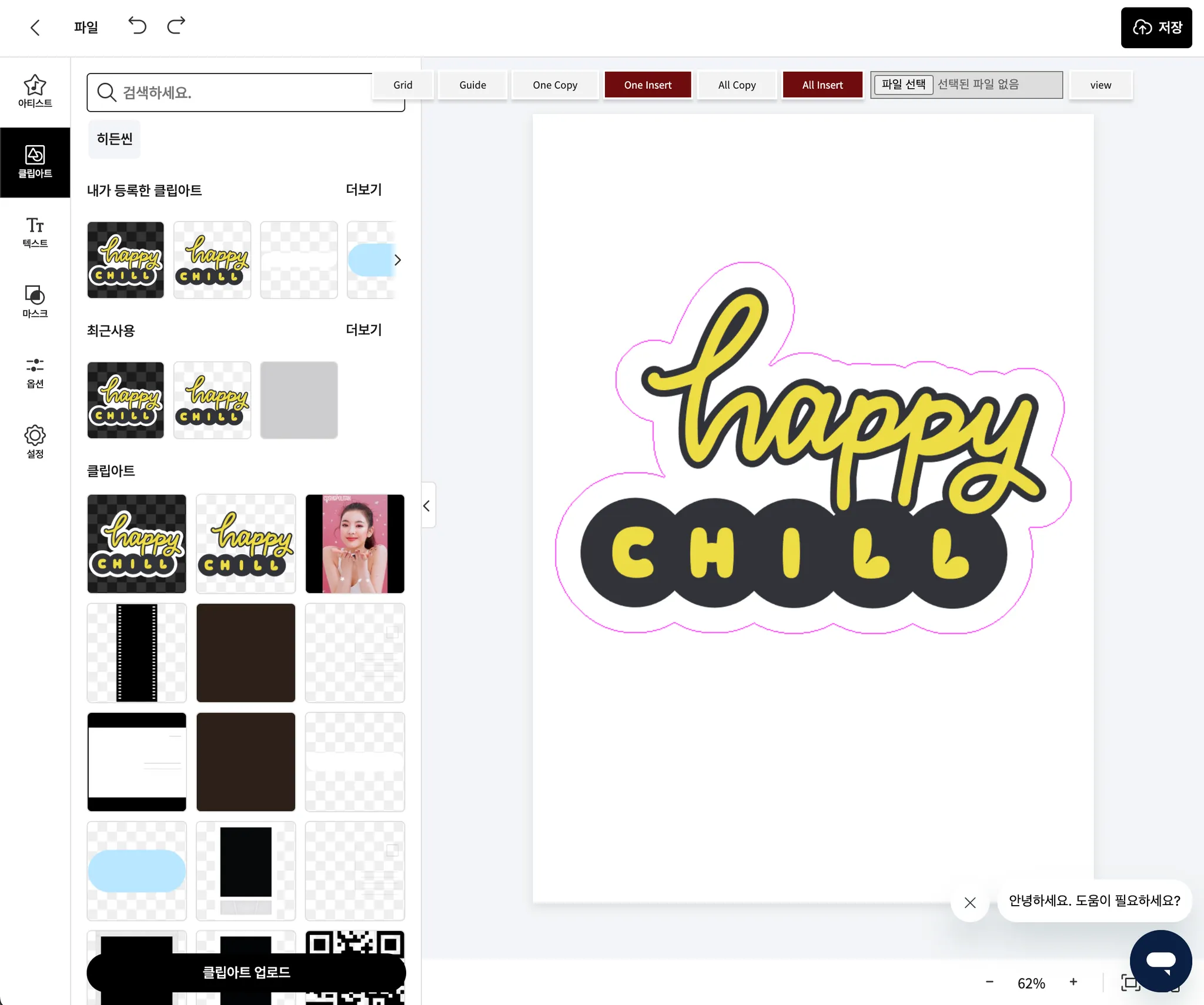 2) 분리된 요소로 구성된 하나의 리소스를 그대로 업로드할 경우, 자동 칼선의 폭이 얇아 편집기에서 보이는 것과 다르게 제작될 수 있습니다.