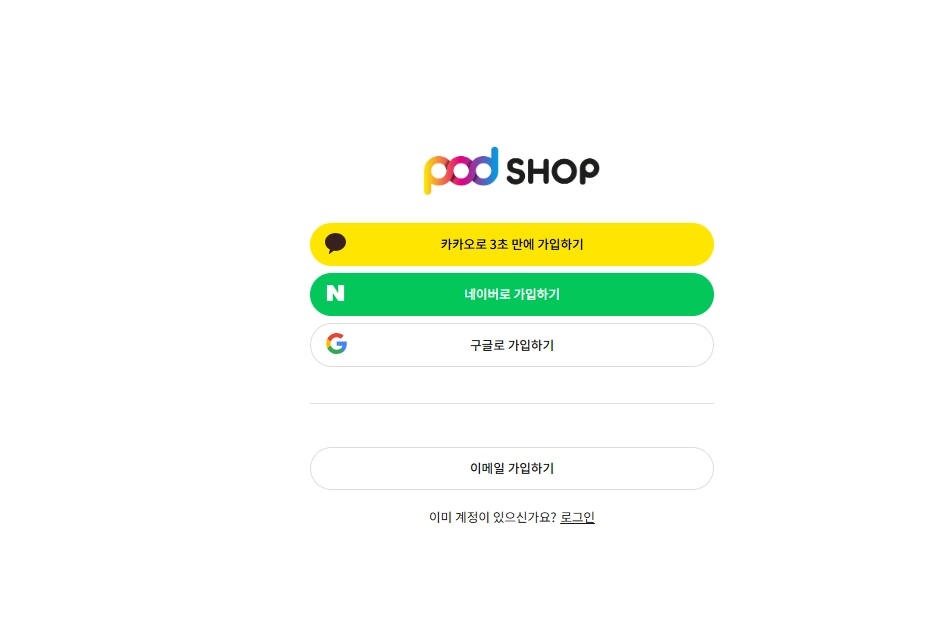 기존에는 자사몰을 운영하면서 POD SHOP을 이용하기 위해서는, 직접 요청하여 POD SHOP 채널 및 계정을 생성했습니다.