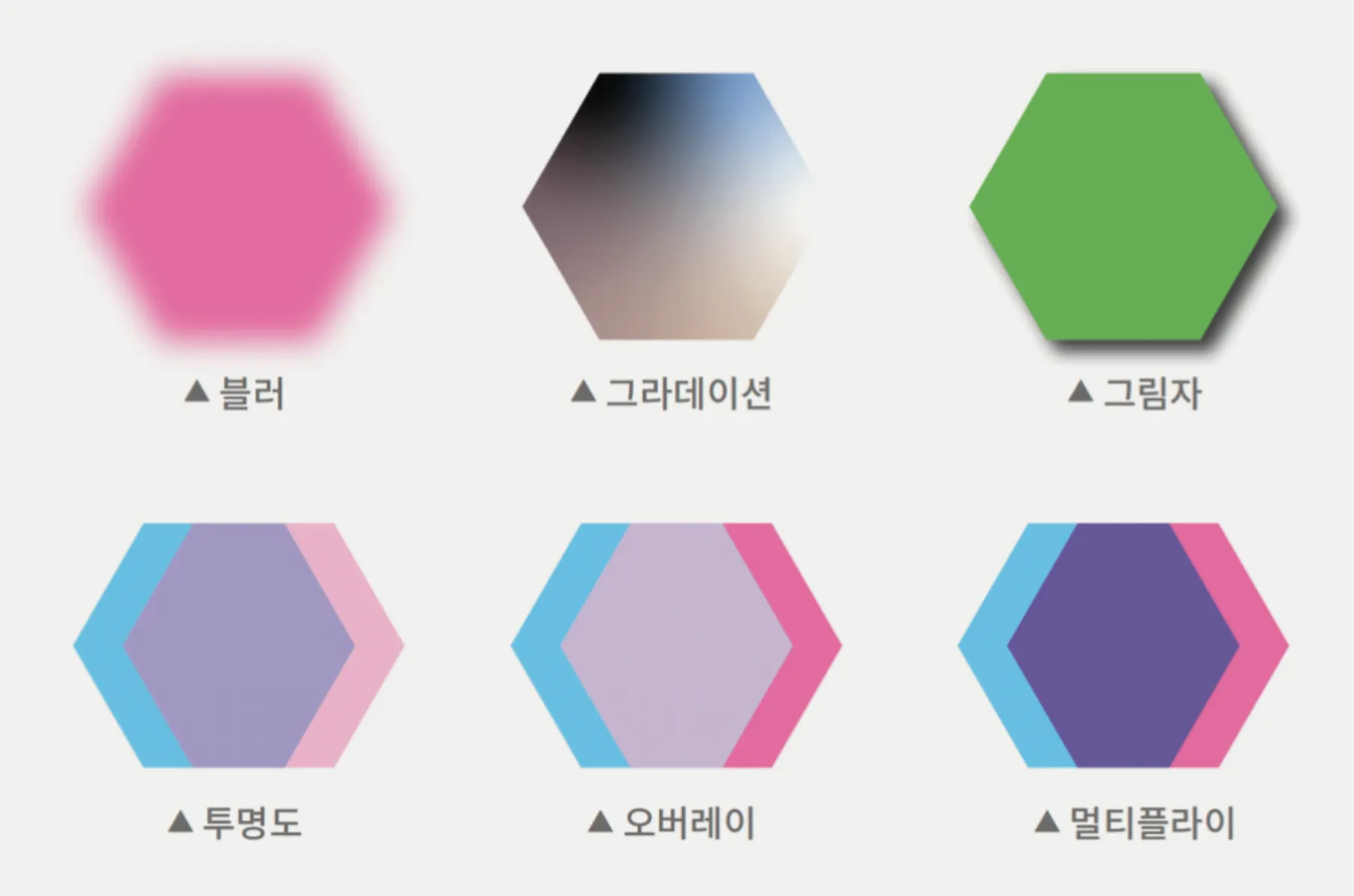 6.효과(블러, 그라데이션, 그림자, 투명동, 오버레이, 멀티플라이) 사용된 그래픽 SVG 사용 불가