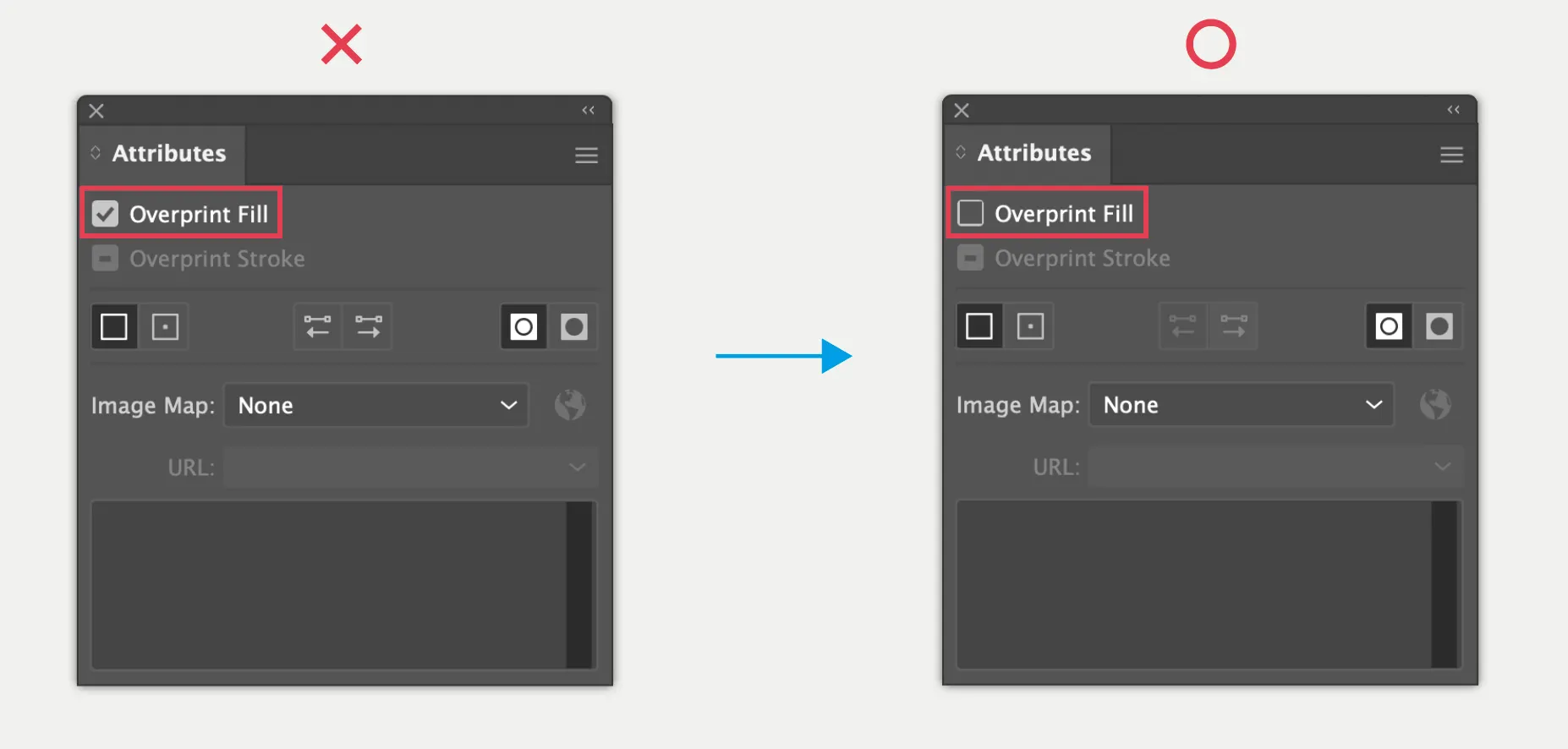 4. Overprint(오버프린트) 선택 해제(중복 인쇄, 겹쳐찍기)