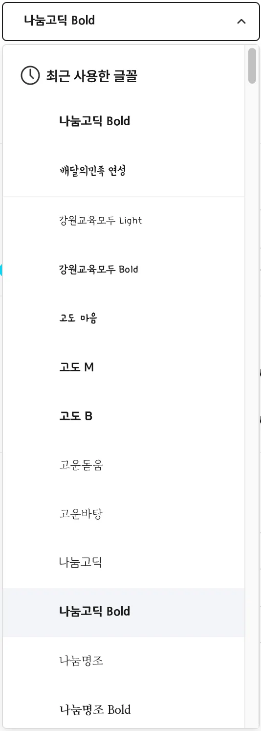 어드민 편집기 제공 폰트