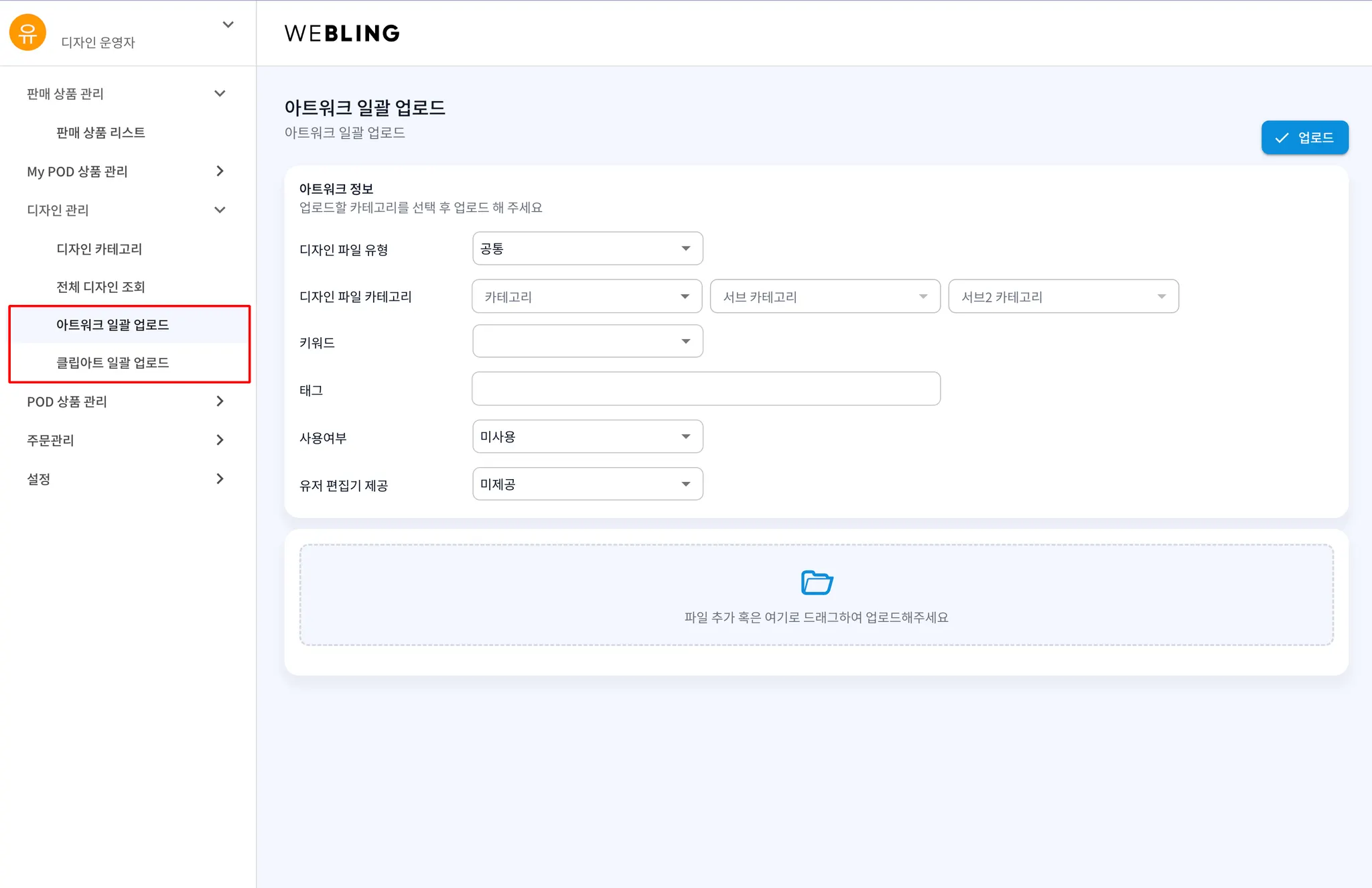 POD shop 채널 어드민에 디자인 파일을 등록합니다.